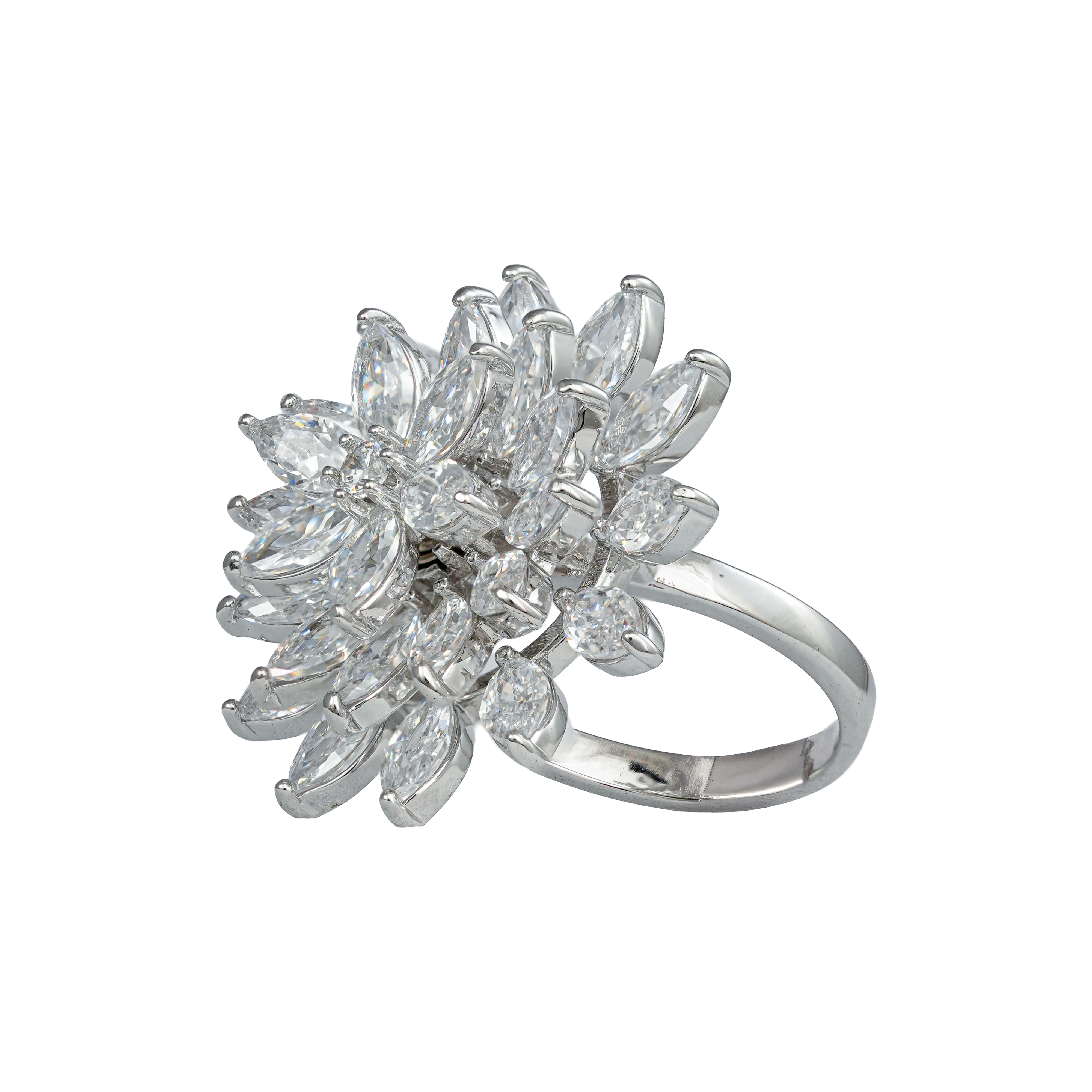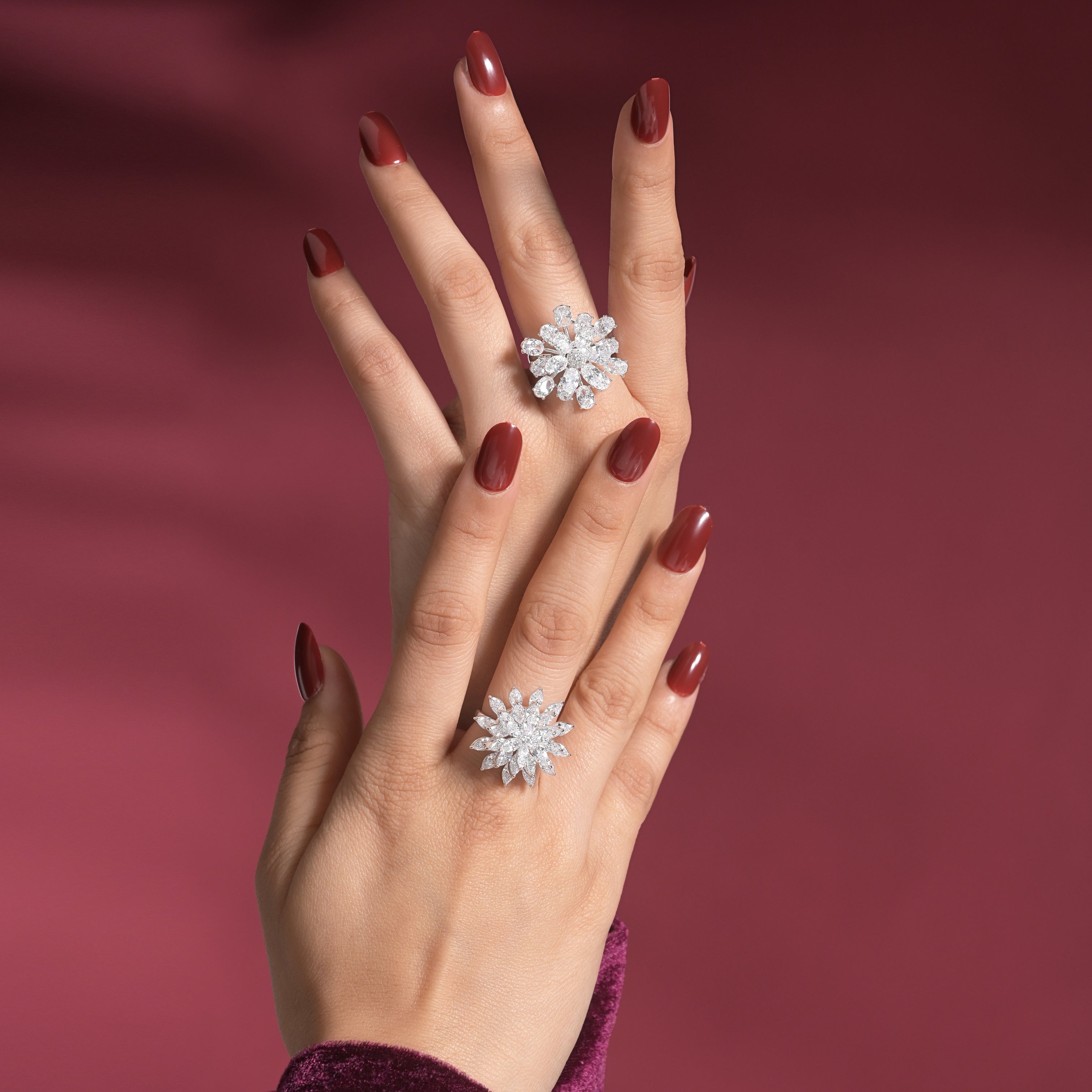 A breathtaking floral cluster of marquise-cut stones forms a radiant bloom that gently rotates, creating a mesmerizing play of light with every movement. Designed to sparkle from every angle, the Eternal Bloom Spinner Ring blends elegance with motion—an exquisite statement of beauty, grace, and endless charm.