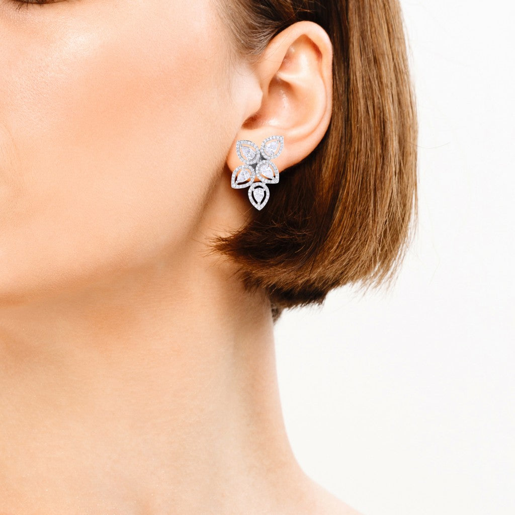 6 Pear Shaped Solitaires Stud In Silver Plating