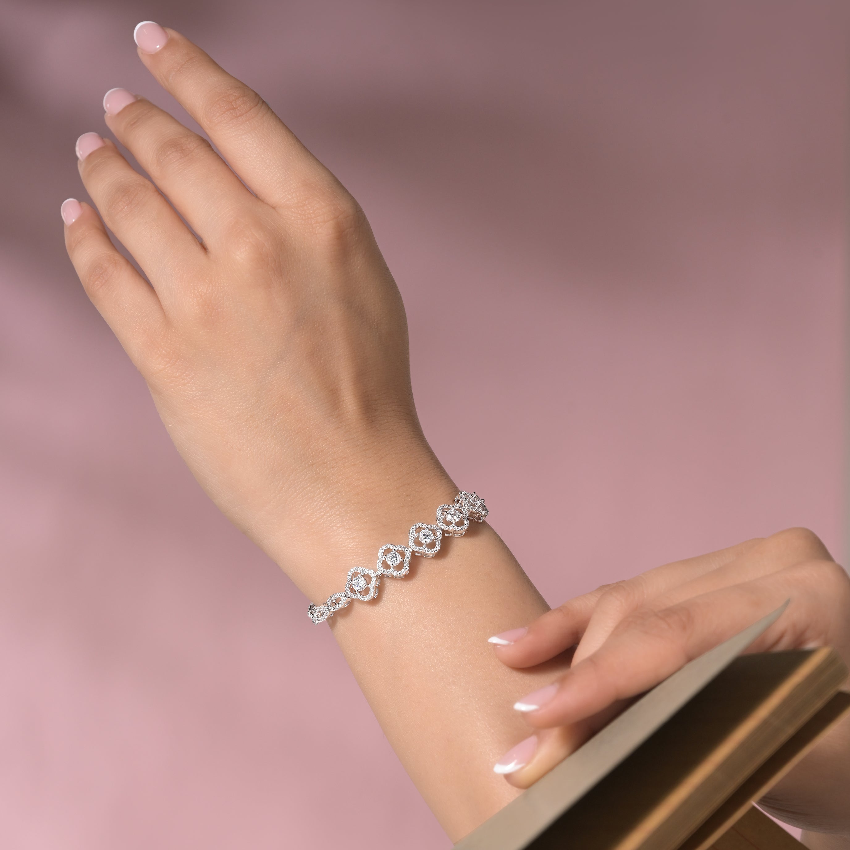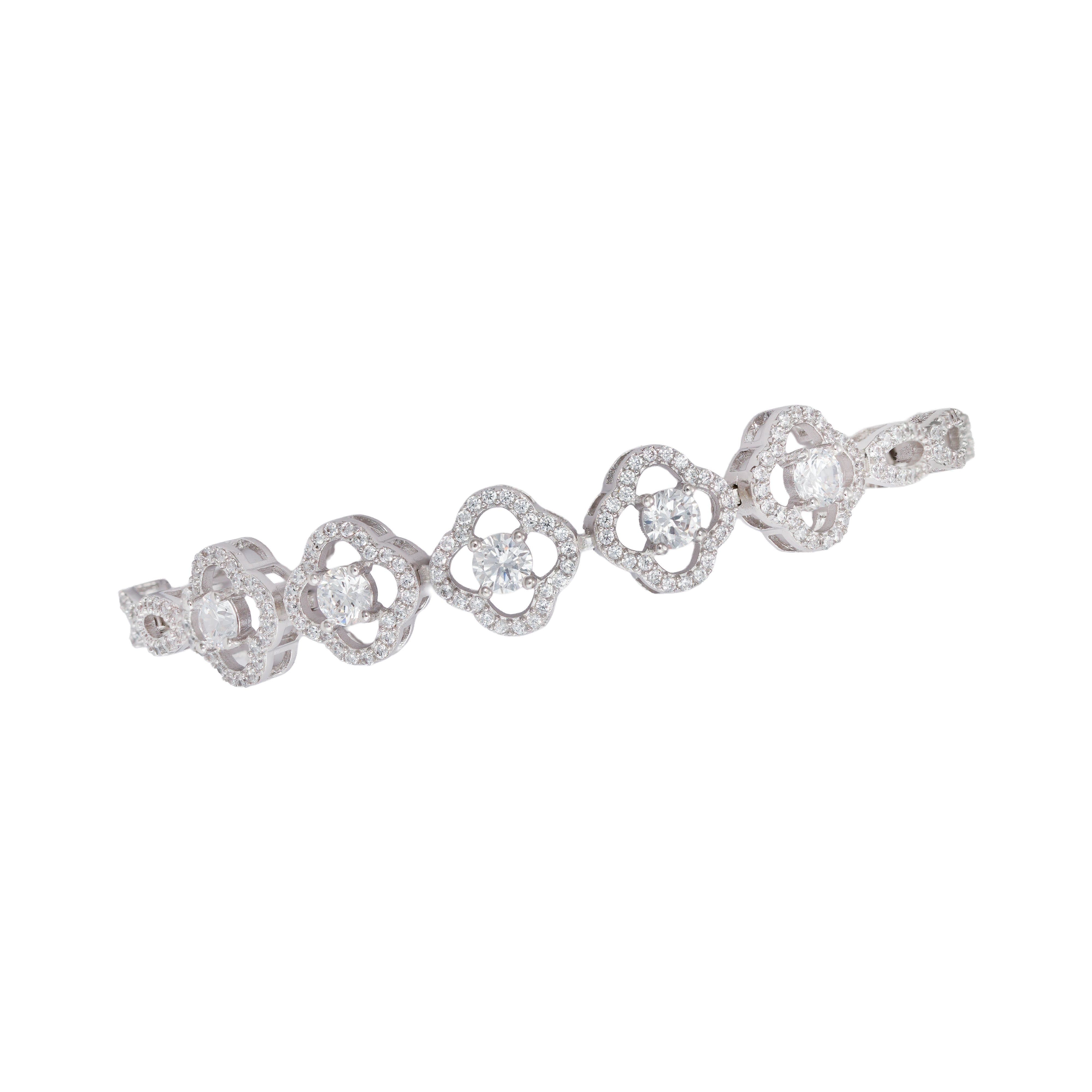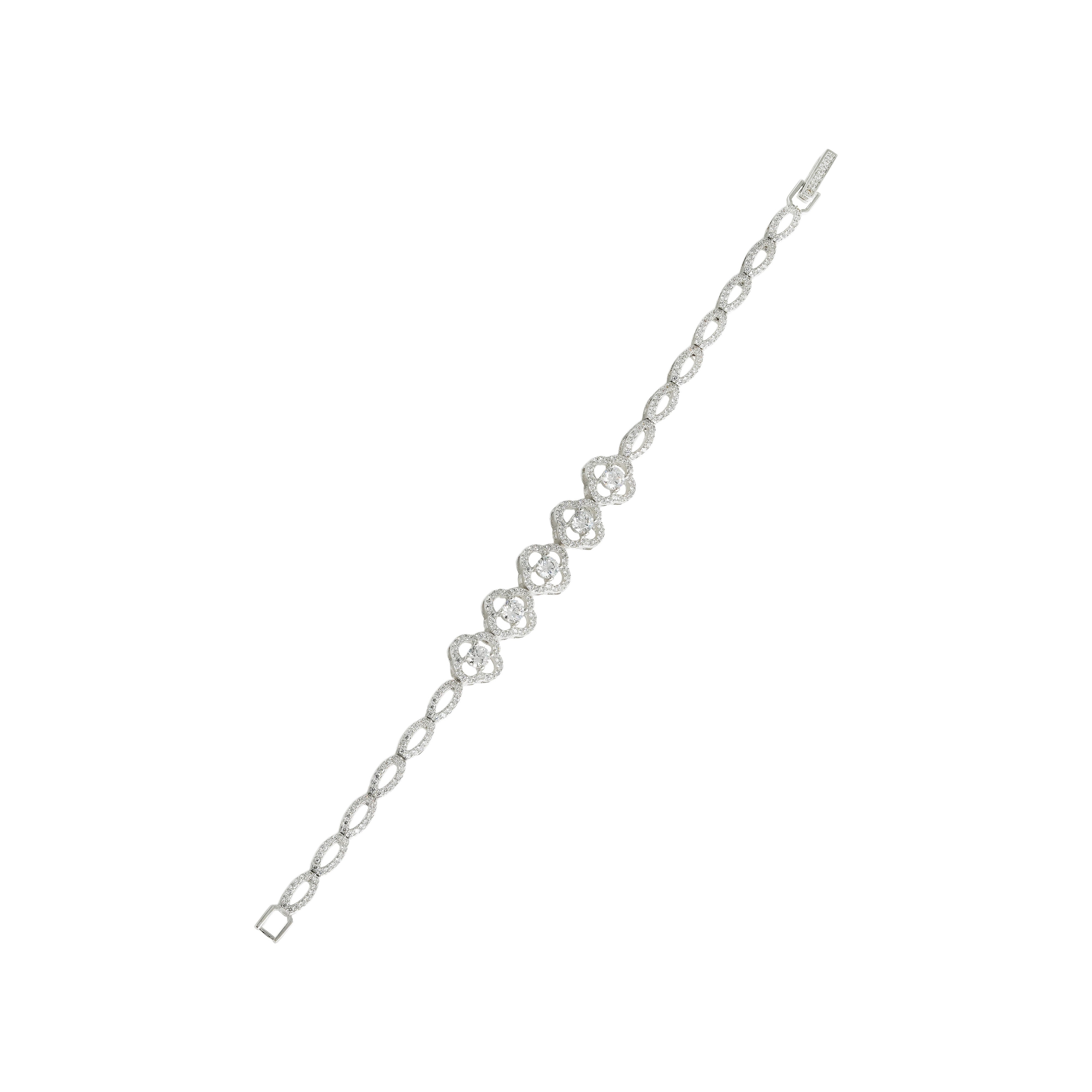 Delicate floral motifs bloom at the heart of the bracelet, connected by graceful, diamond-studded oval links that shimmer with every movement. Designed for effortless elegance, this bracelet blends feminine charm with modern refinement—perfect for daily wear, brunch dates, or subtle festive styling. Light, timeless, and endlessly graceful, it’s a piece you’ll reach for every day.